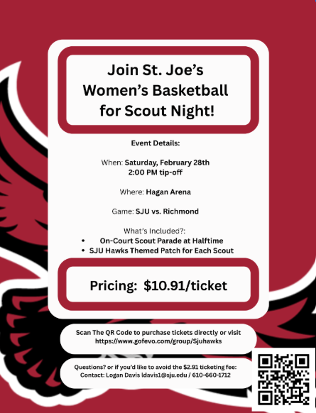 SJU vs. RichmondGirl Scouts are invited to participate in our Girl Scout Parade at halftime and will receive a custom SJU Hawks-themed patch to add to their collection.